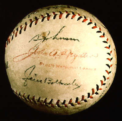 Ball type: Spalding Official National League, double-stitched, John Heydler signature.