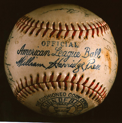 Ball type: Reach Official American League, single-stitched, William Harridge signature (front panel).