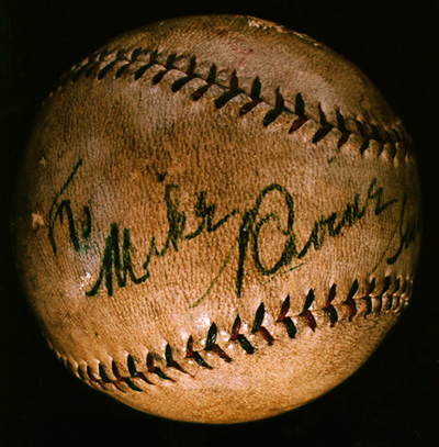 Inscriptions: "To Mike Ravine Sincerely Babe Ruth 19[??]" extending across lower, back, and upper panels.