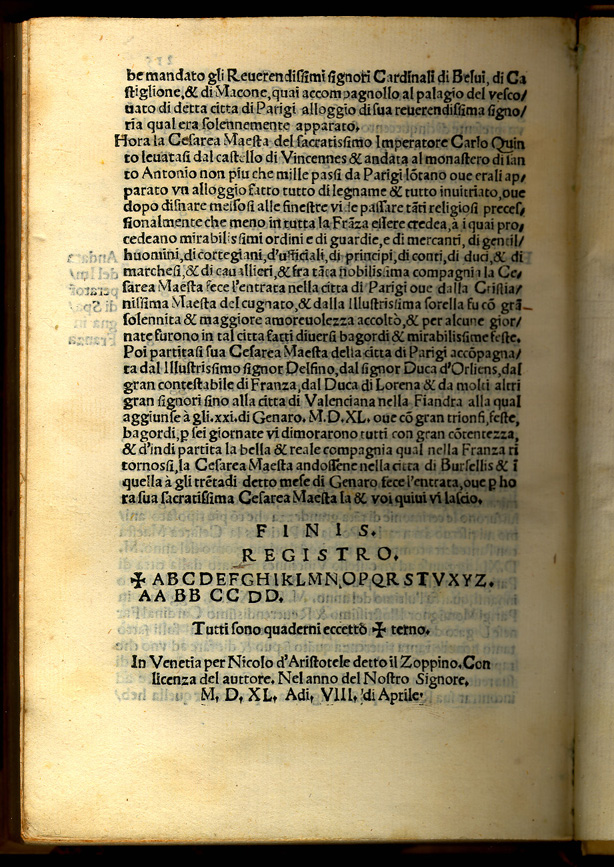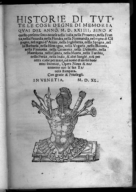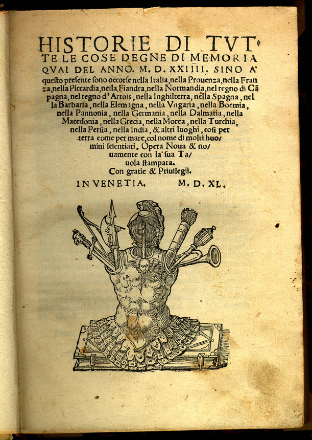 Marco Guazzo. Historie di Tutte le Cose Degne di Memoria. Venetia: Nicolo d'Aristotele, 1540.
