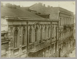 The building on Ganovskaia (later Tabidze) Street, in Tbilisi, where members of the Polievktov-Nikoladze family have lived since 1921.