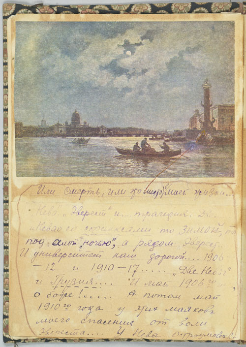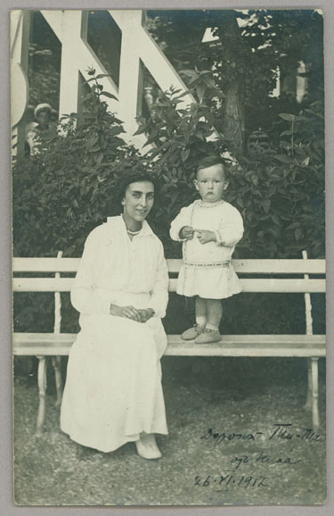 In the summer of 1913, Rusudana married the Petersburg historian Mikhail Aleksandrovich Polievktov. They were acquainted as early as 1907, when she was a senior at WPI and where he taught at the time. Their only child, Nikolai (Nika) Mikhailovich Nikoladze-Polievktov, was born in 1915. During 1913-1914 Rusudana accompanied her husband on several research trips to Berlin and Paris; they also visited Switzerland, France, and Scandinavia as tourists. The outbreak of the First World War caught the couple in Switzerland, penniless and unable to travel back to Russia across Central and Eastern Europe. They returned home only in late September 1914, after a long detour via Marseilles, Constantinople and Odessa. Rusudana recalled that on the last leg of the journey they were on the same boat with the members of the renowned K.S. Stanislavskii theater company. Her travels are described in great detail in her travelogues and diaries, which are now part of the Polievktov-Nikoladze Family Papers at Notre Dame.