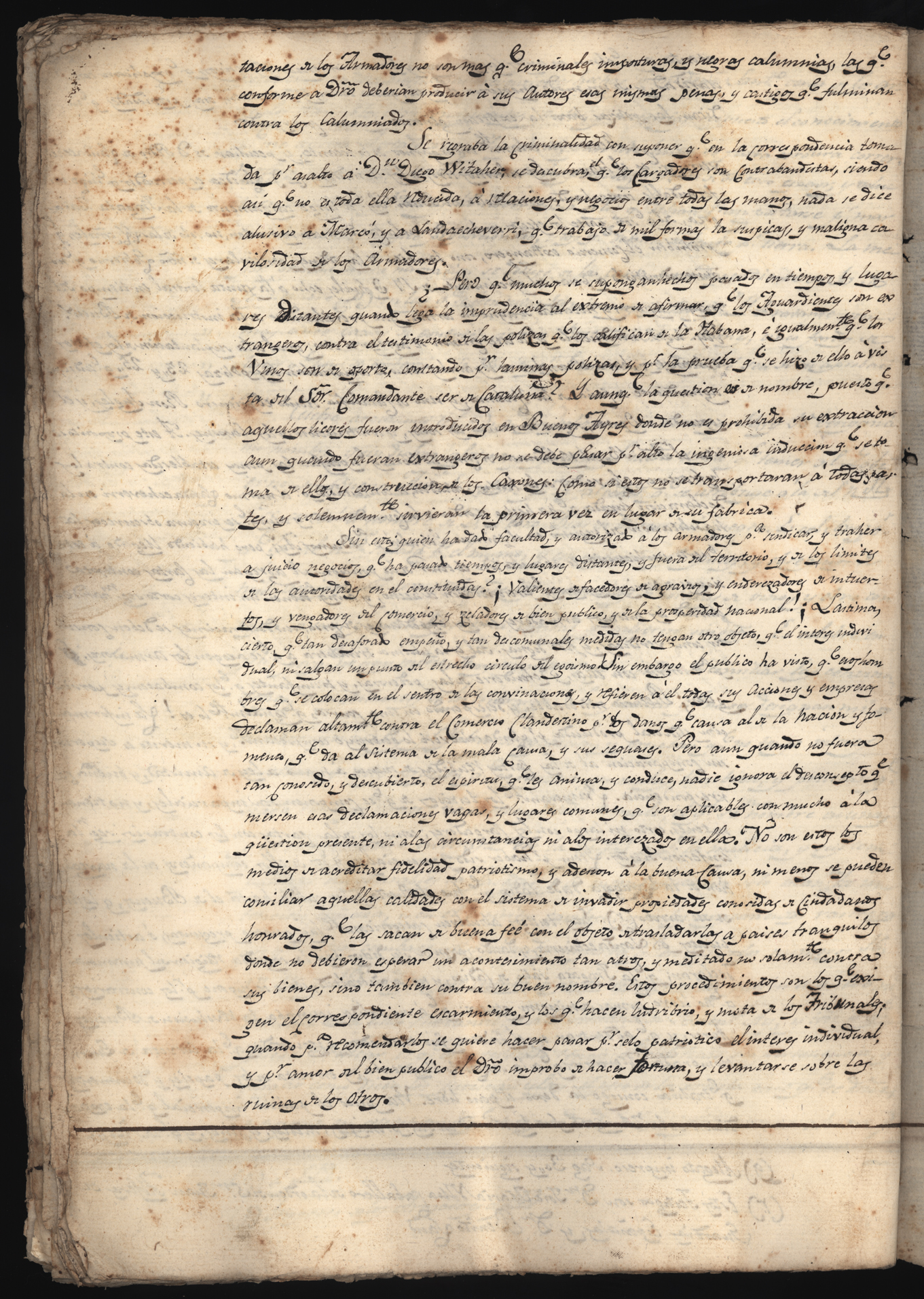 This manuscript documents the increasing loss of Spanish commercial control within Latin America to the French and English. While this particular case occurred after much of Latin America had declared independence from Spain, it represents Spains efforts to hold onto the commercial control that they enjoyed throughout the colonial period.
