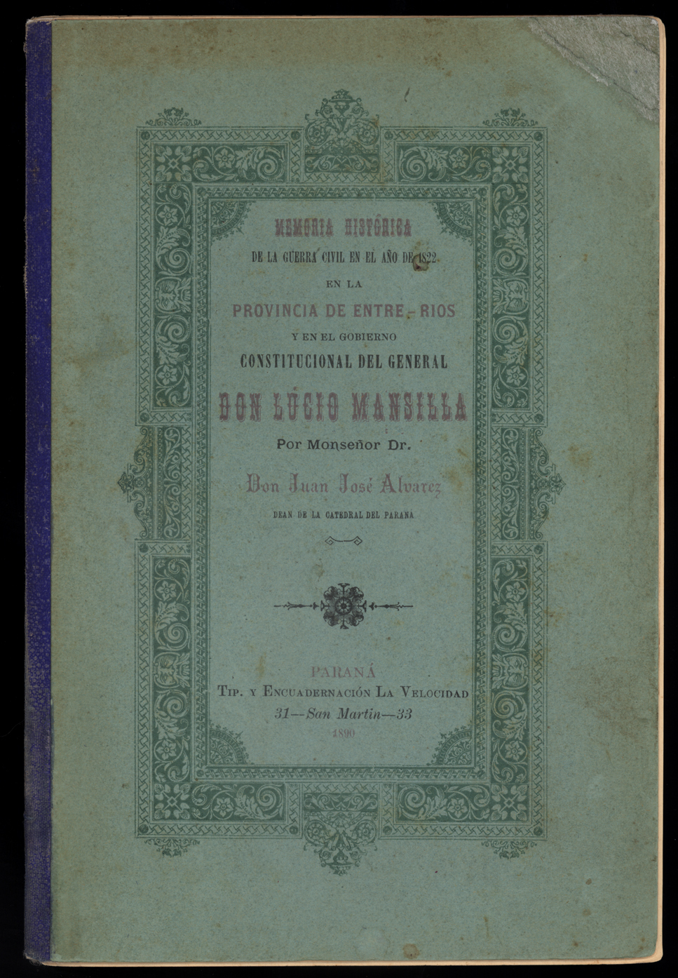 Paraná, Argentina: Tipografía y Encuadernación "La Velocidad", 1890.