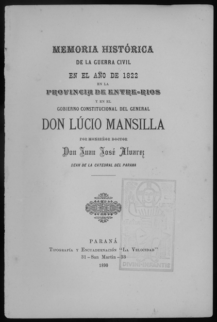 Alvarez, a priest in Paraná, Entre Ríos, tells of the instability within Entre Ríos during the governorship of Lúcio N. Mansilla, a federalist who married Juan Manuel Rosas sister and became prominent in Rosas government. Several attempts were made to overthrow the governor. When Lúcas Piris was killed trying to assassinate Mansilla, his body was hung in the central plaza for 24 hours to warn others.