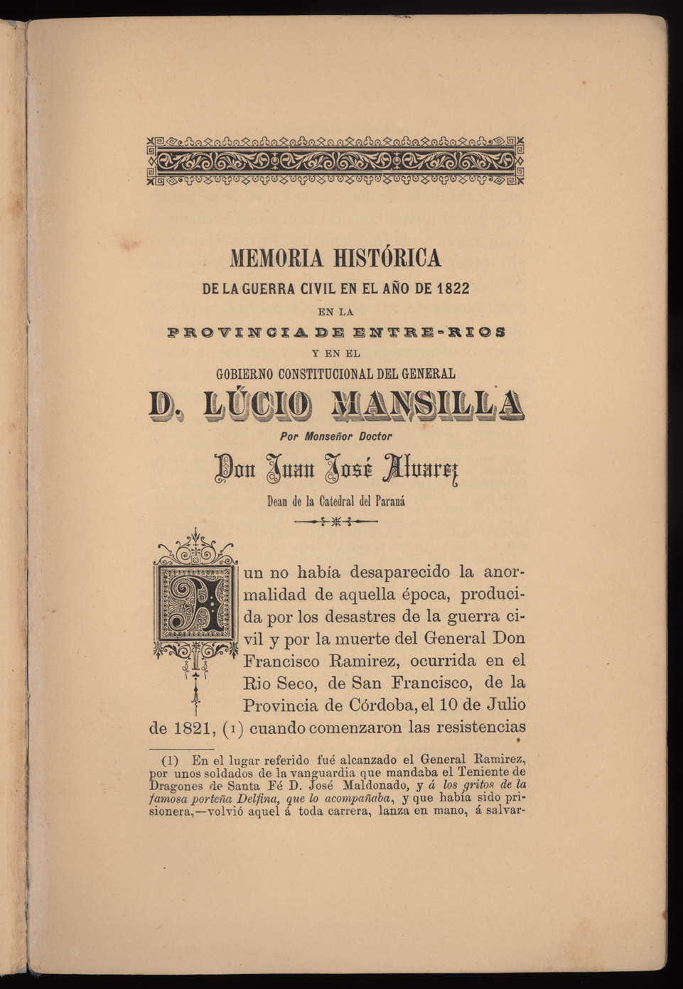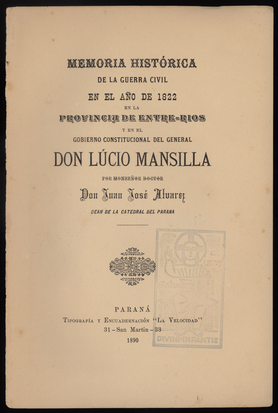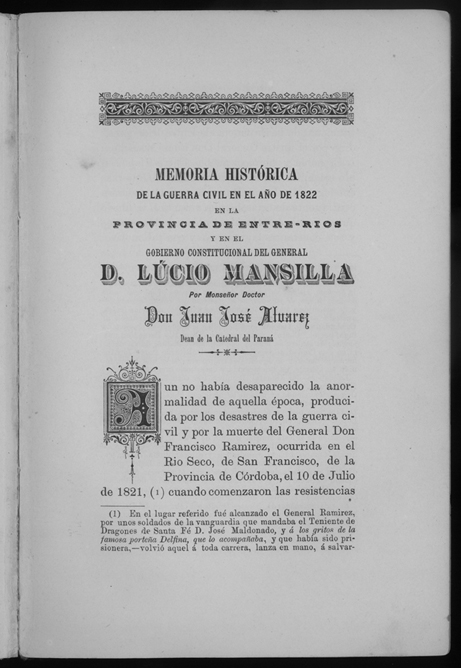 Memoria histórica de la guerra civil en el año de 1822 en la provincia de Entre-Rios y en el gobierno constitucional del General Don Lúcio Mansilla.
